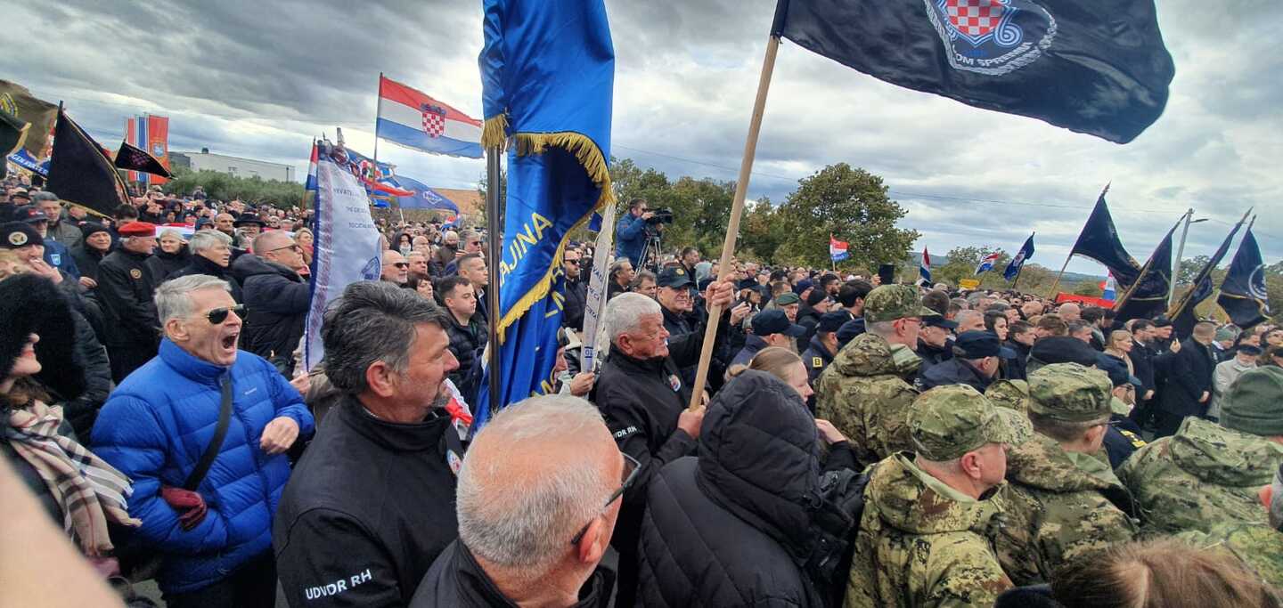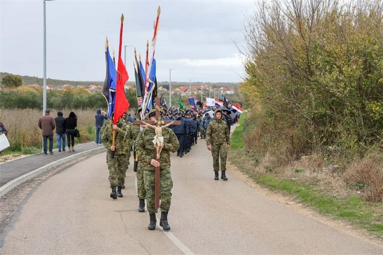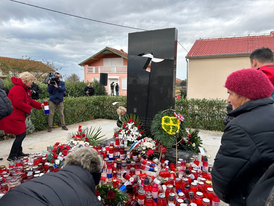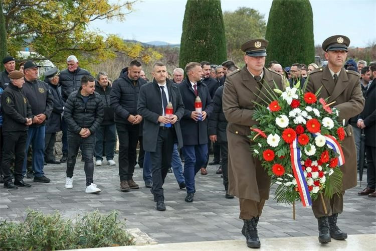 Potom je s Ambara, dostojanstveno i s dubokim poštovanjem prema žrtvama, krenula „Kolona sjećanja“ prema spomen-obilježju masovne grobnice gdje je podno središnjeg križa vijenac položilo izaslanstvo Zajednica udruga hrvatskih civilnih stradalnika Domovinskog rata.
