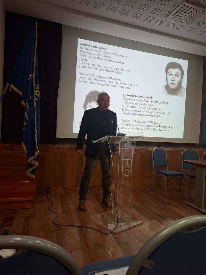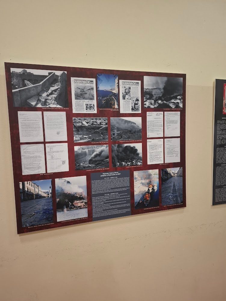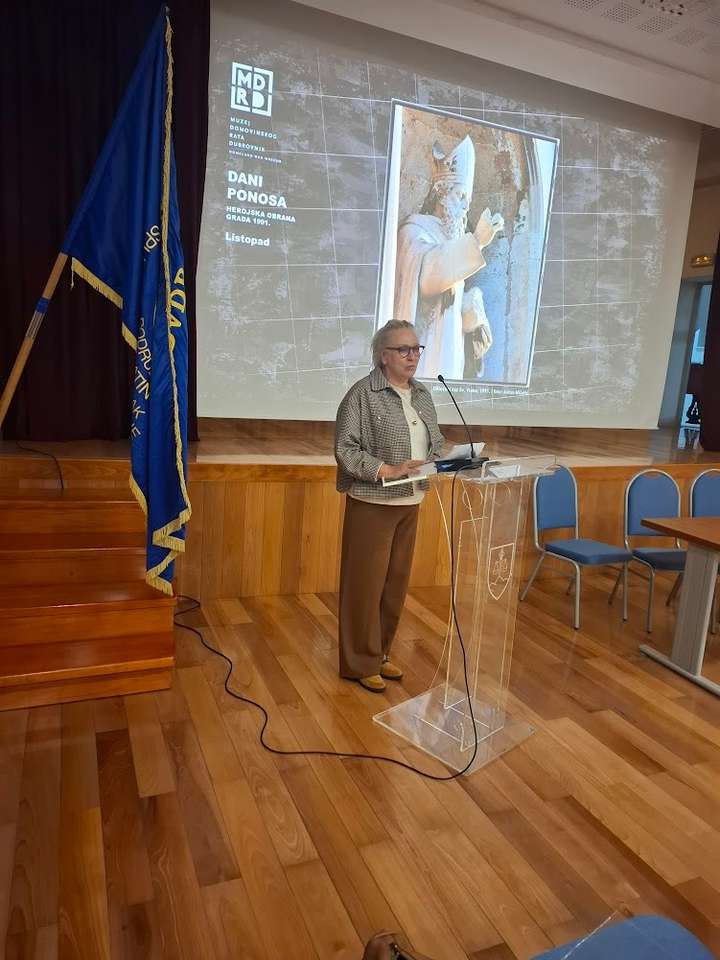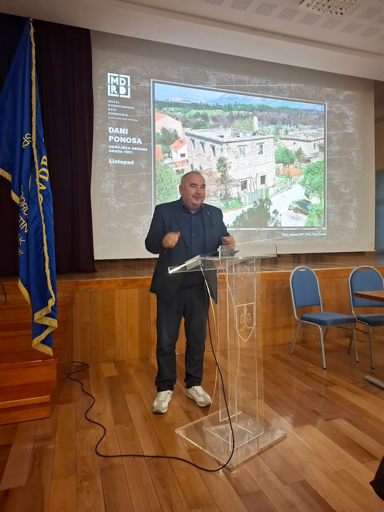 Nakon intoniranja hrvatske himne i odavanja pocasti minutom sutnje za poginule hrvatske branitelje, skup je vodio modelator Zoran Vrbatović Vrba, a u ime domaćina skupu se je obratio predsjednik UDVDR Ogranka Dugopolje Vlade Perisic, pozdravio članove obitelji poginulih hrvatskih branitelja u čiju se čast ova izložba i postavljena kao i sve nazocne branitelje, uzvanike i goste zahvalivši im se na dolasku. Istaknuo je znacaj i svrhu postavljanje ove izložbe koja ce se moci razgledati do 31.12 2025 godine. Podrobnije o izložbi i dokumentarnom filmu koji se prikazuje u sklopu iste, iznijela je ravnateljica Muzeja Domovinskog rata iz Dubrovnika gosp. Varina Jurica Turk istaknuvši da su na izložbi u digitalnom zapisu i u izvorniku predstavljene tri temeljne tematske cjeline: - Srpsko-crnogorska agresija listopad 1991, - Najteži dani herojske obrane grada studeni 1991 - Dan za sve dane 6. prosinac 1991.